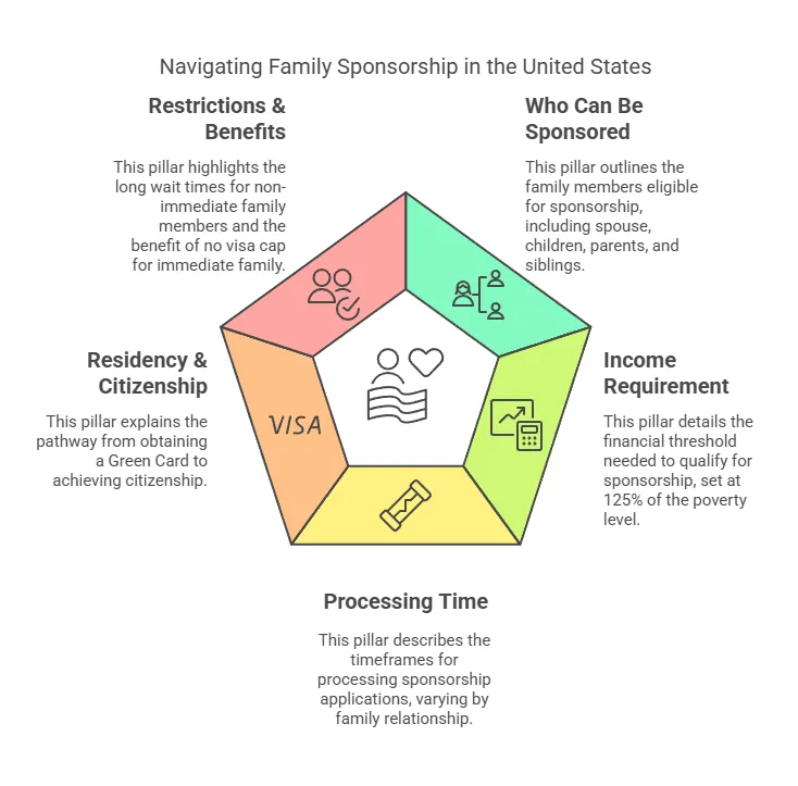 The United States offers one of the broadest scopes for family-based immigration, which has historically been a pillar of its immigration system. Expats (usually after becoming U.S. permanent residents or citizens) can sponsor various relatives, though wait times and processes vary greatly by relationship.