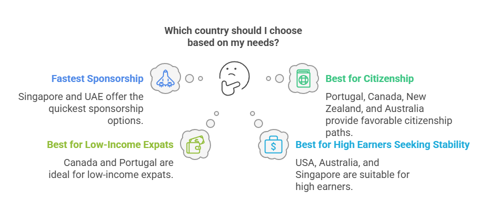 Choosing the best country for expat family sponsorship depends on your priorities – be it speed and ease of reunification, long-term citizenship opportunities, or economic prospects for your family.
