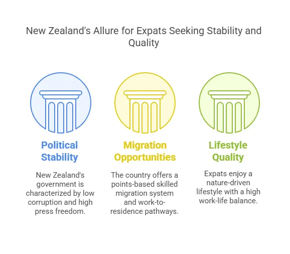 Residency and Citizenship Options: New Zealand’s immigration system is skill-focused and relatively straightforward, making it feasible for qualified expats to relocate. Key pathways include: