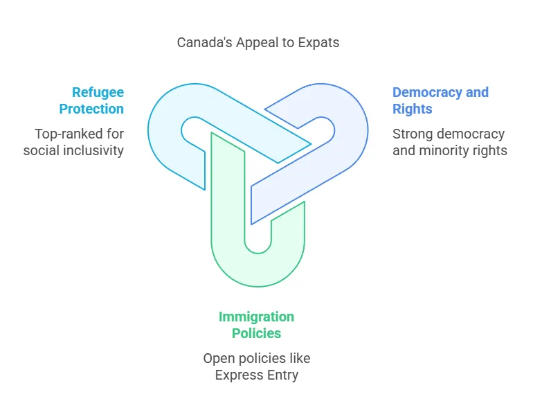 Canada consistently stands out as one of the world’s freest and most stable countries, making it a top choice for expats seeking refuge from political turmoil. Freedom House rates Canada at 97/100, among the highest worldwide, and it ranks in the top tier of the EIU Democracy Index (a full democracy). Canadians enjoy robust civil liberties, rule of law, and government accountability. Minority rights are strongly protected under the Canadian Charter of Rights and Freedoms, and the country is proudly multicultural – discrimination based on race, religion, gender, or sexual orientation is unlawful. Canada is often regarded as a leader in human rights protections. For example, the constitution and human rights laws provide equal rights and guard against discrimination for minority groups. Freedom of expression is well-protected; the press is free and vibrant (Canada ranks around 15th in the world for press freedom), with open debate encouraged.