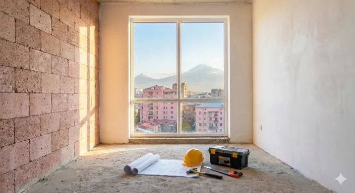 在评估待修缮房屋时,最重要的因素是位置和区域、结构状况(考虑到亚美尼亚的地震活动,尤其是抗震安全性)、建筑物的年代和公共区域(屋顶、楼梯间、电梯)的状况,以及该房产是否拥有清晰的产权且无任何产权负担。